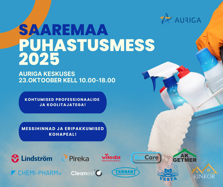 23. oktoobril kell 10–18 muutub Auriga keskuse I ja II korrus Saaremaa puhtuseparadiisiks!