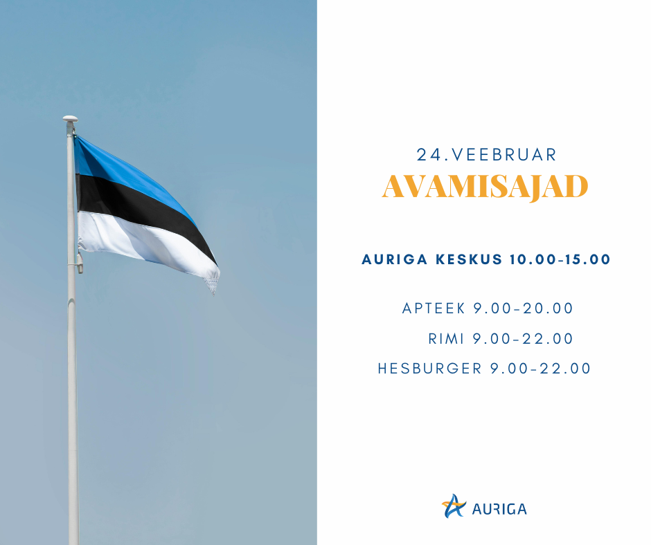 Eesti Vabariigi aastapäeval, 24. veebruaril, on Auriga keskus avatud 10.00–15.00.